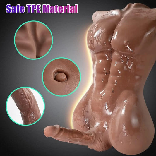 Lifelike Torso Male Sex Doll for Women with Flexible Dildo Realistic Sex Huge Cock 7.08inches, Sex Dildo Dolls for Women Masturbation, Unisex Masturbator Tight Anal Sex Toy for Men Gay Couple